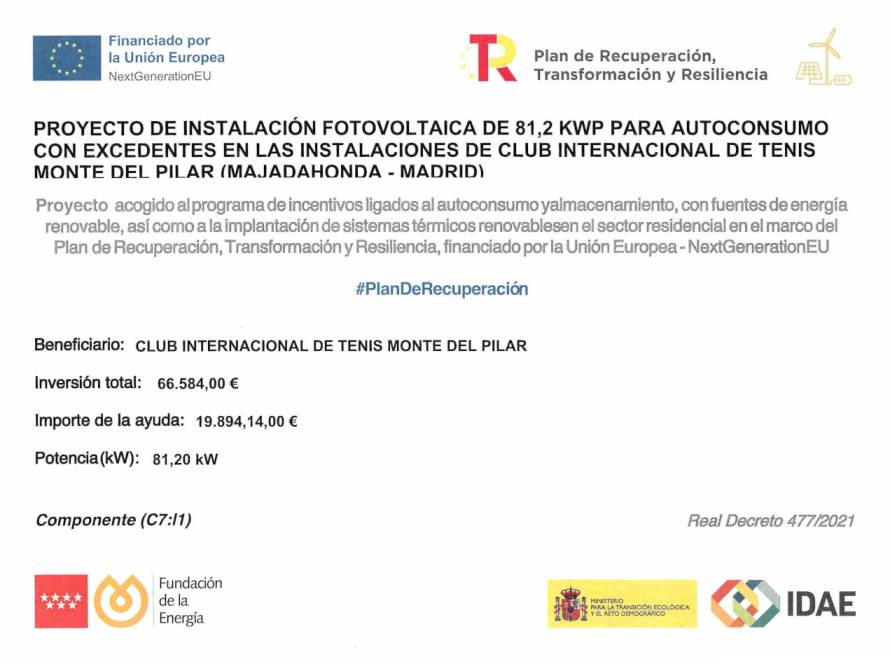 Noticias26 de marzo de 2026Club Internacional de Tenis instala una planta fotovoltaica para autoconsumo con almacenamiento con la ayuda otorgada por la Unión Europea